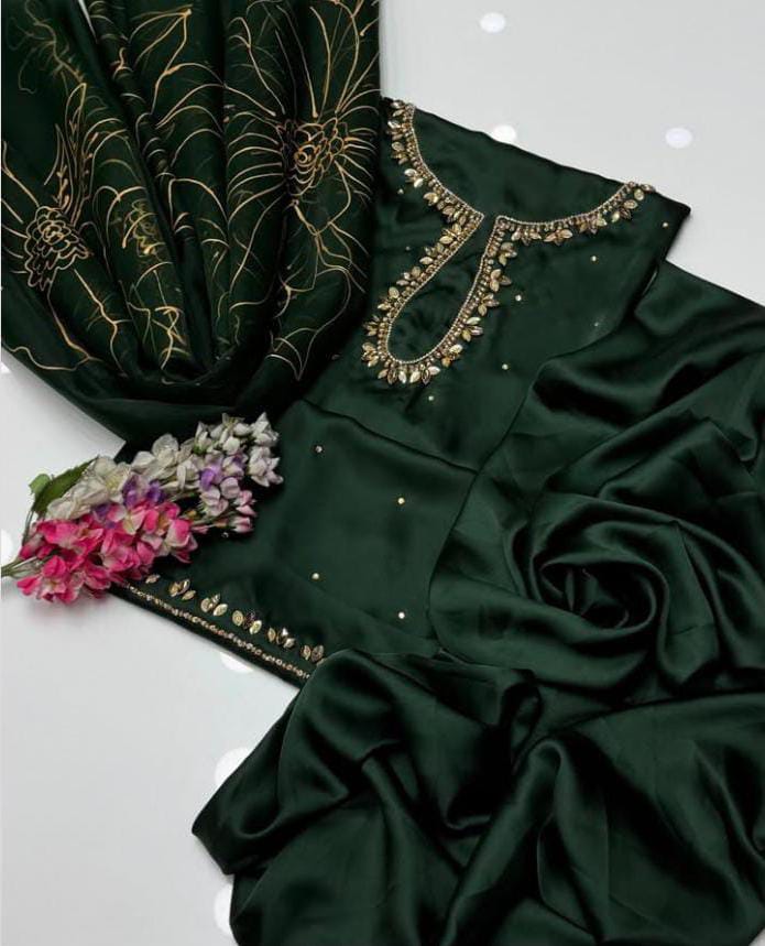 β 1.75 Yards Shamoz Silk Shirt β Delicately embroidered on gala and daman