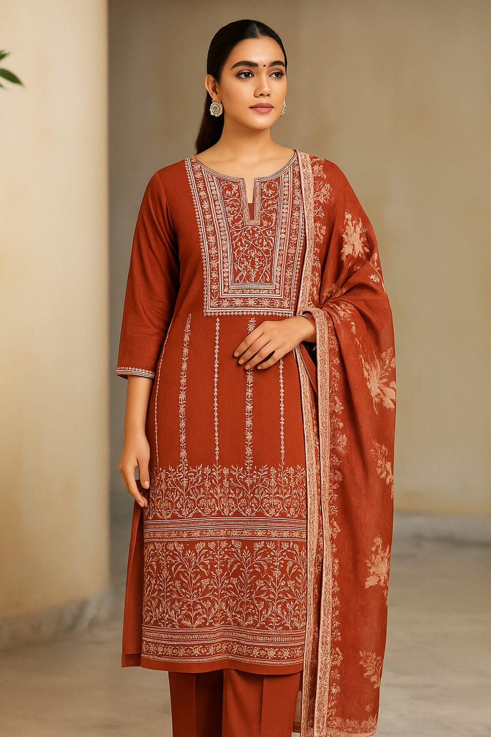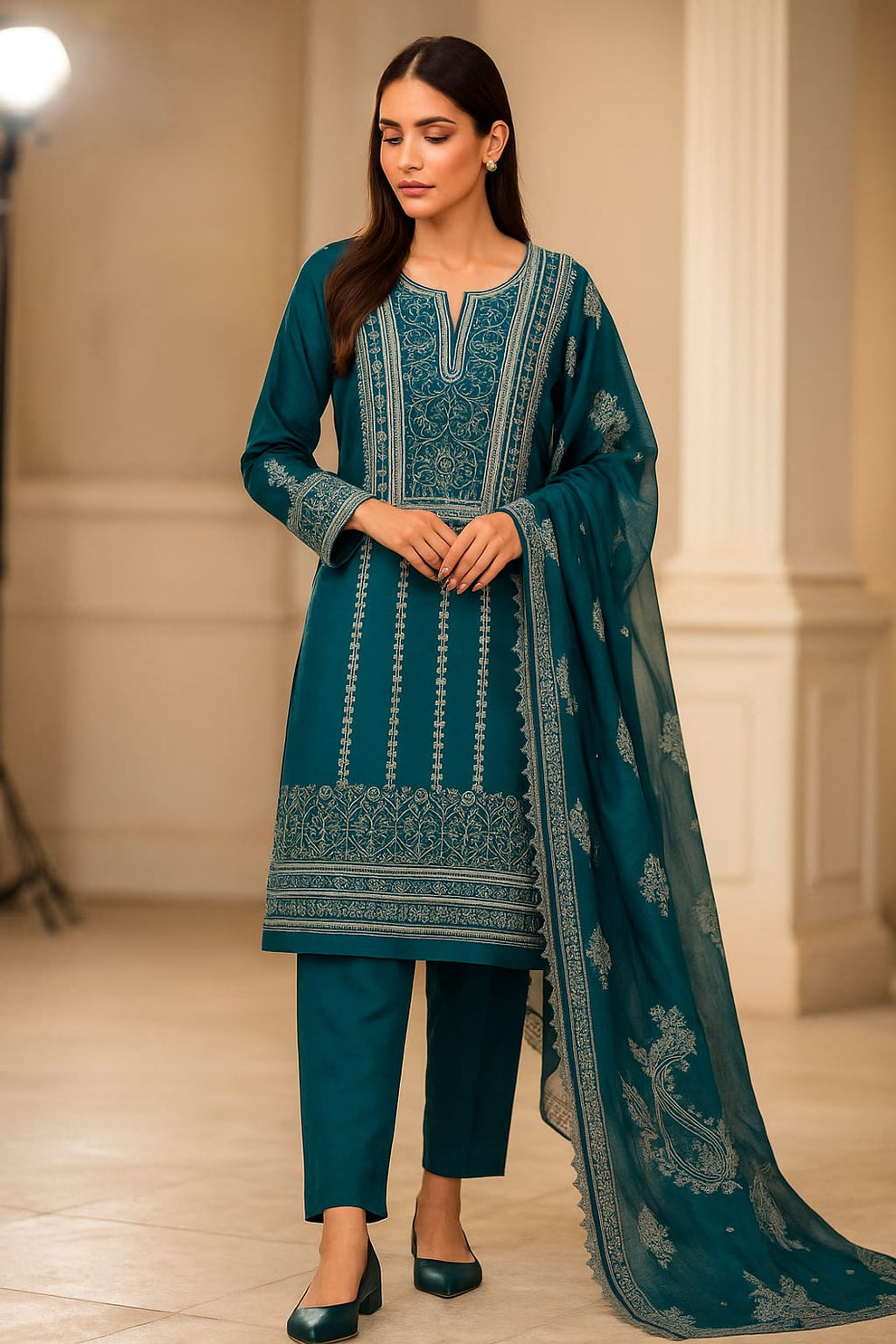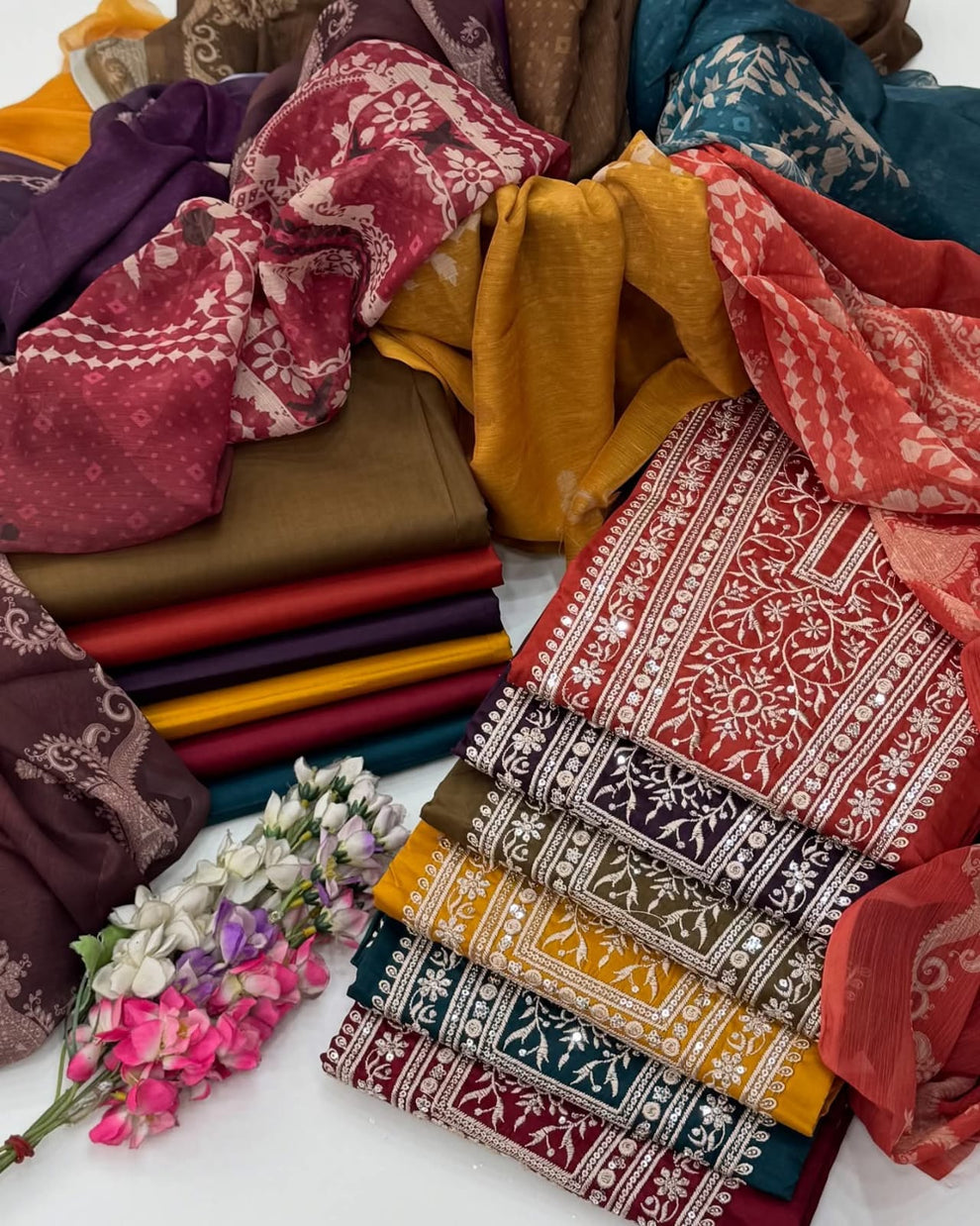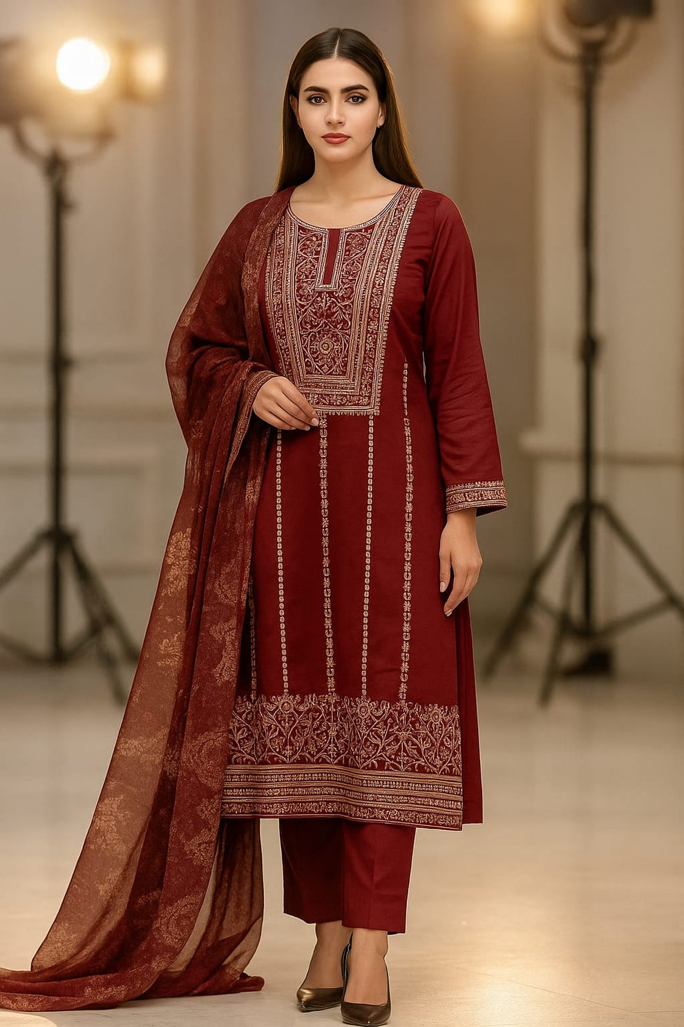 Fancy Sequence Bareeze Thread Embroidery ๐งต Lawn Shirt & lawn plan Trouser With Digital Printed Chiffion Duppata 3 Pc Dress ๐
