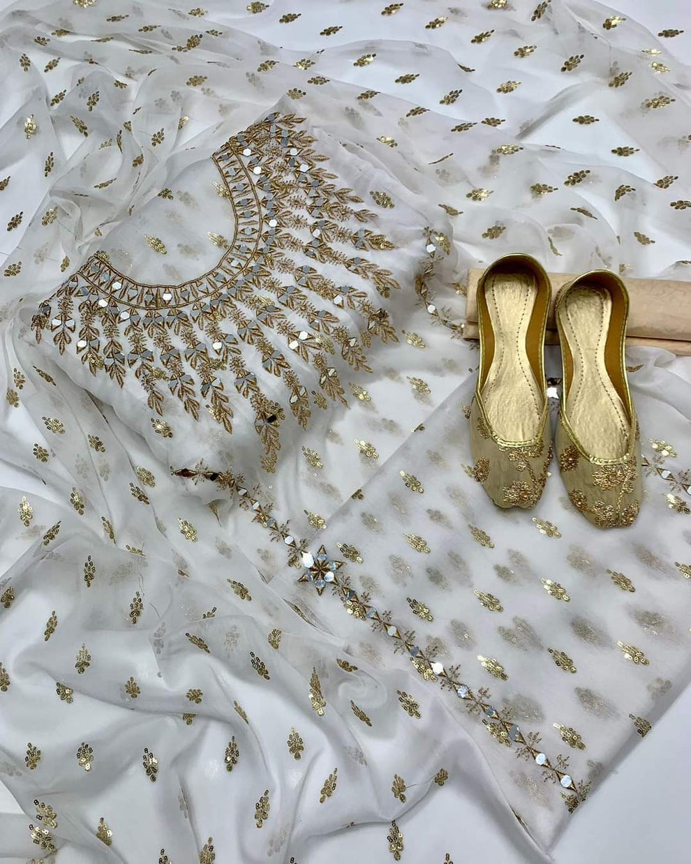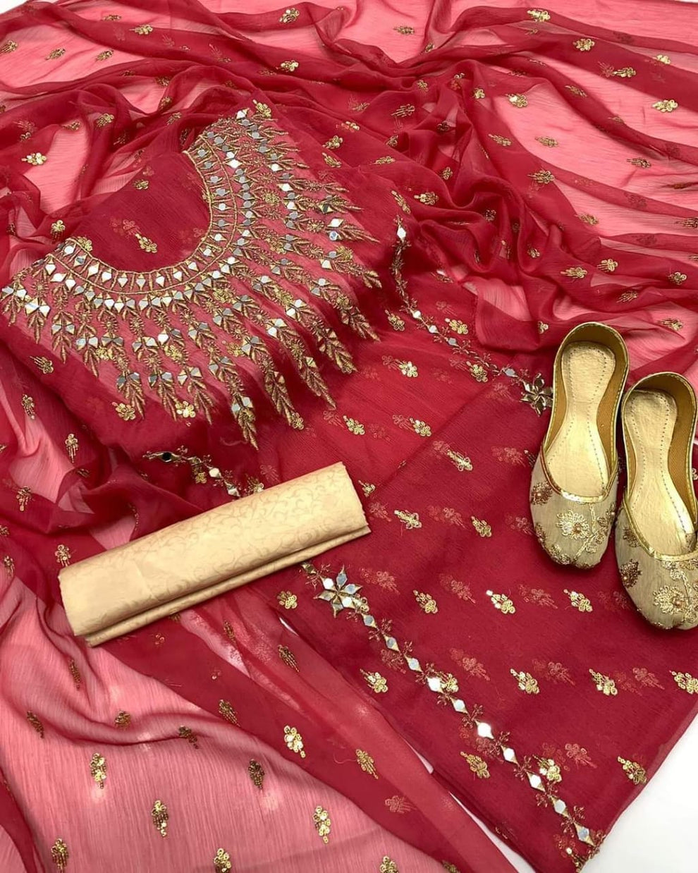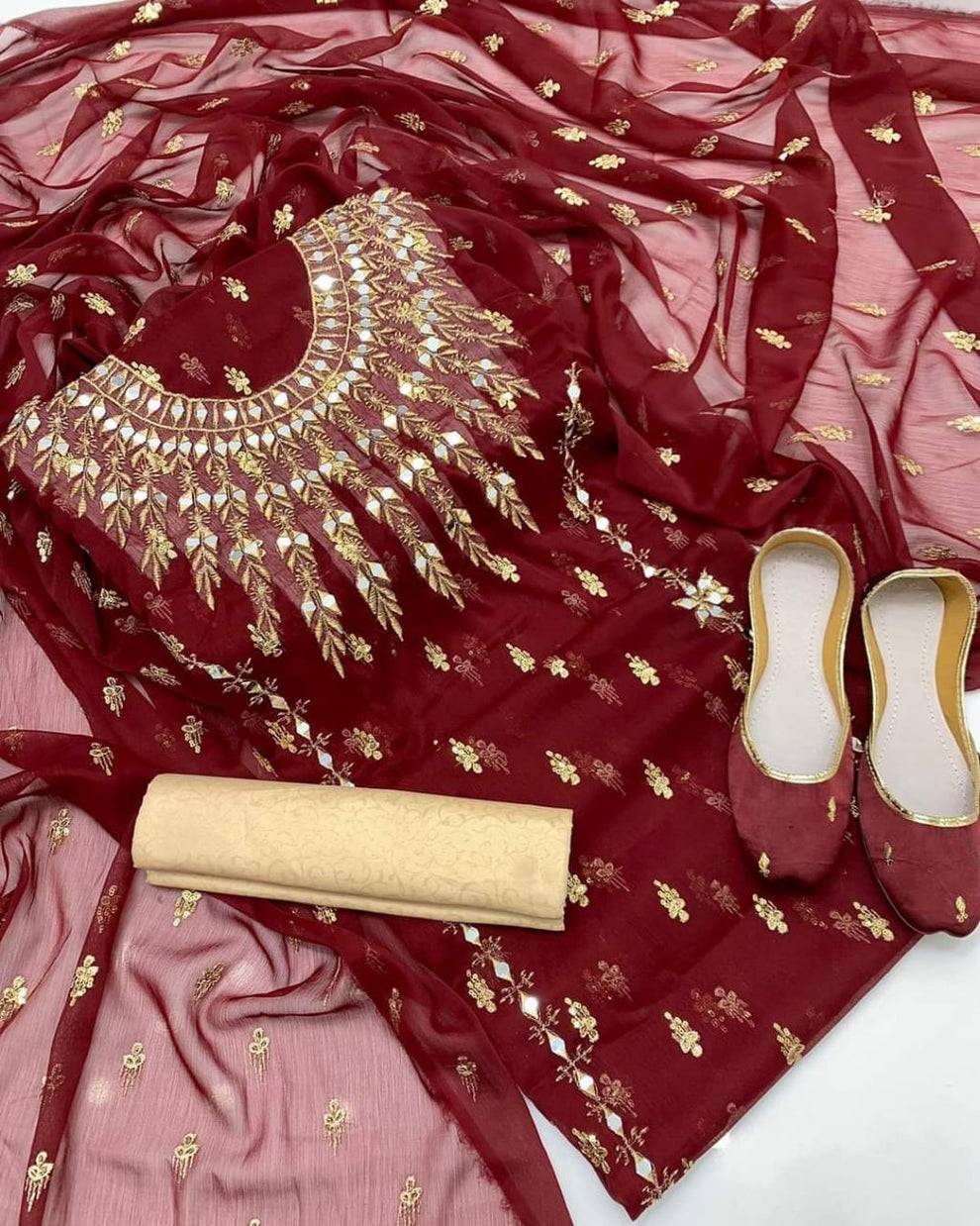 – Duppata: Embrace sophistication with our dupattas adorned with intricate all-over embroidery, enhancing the allure of your look.