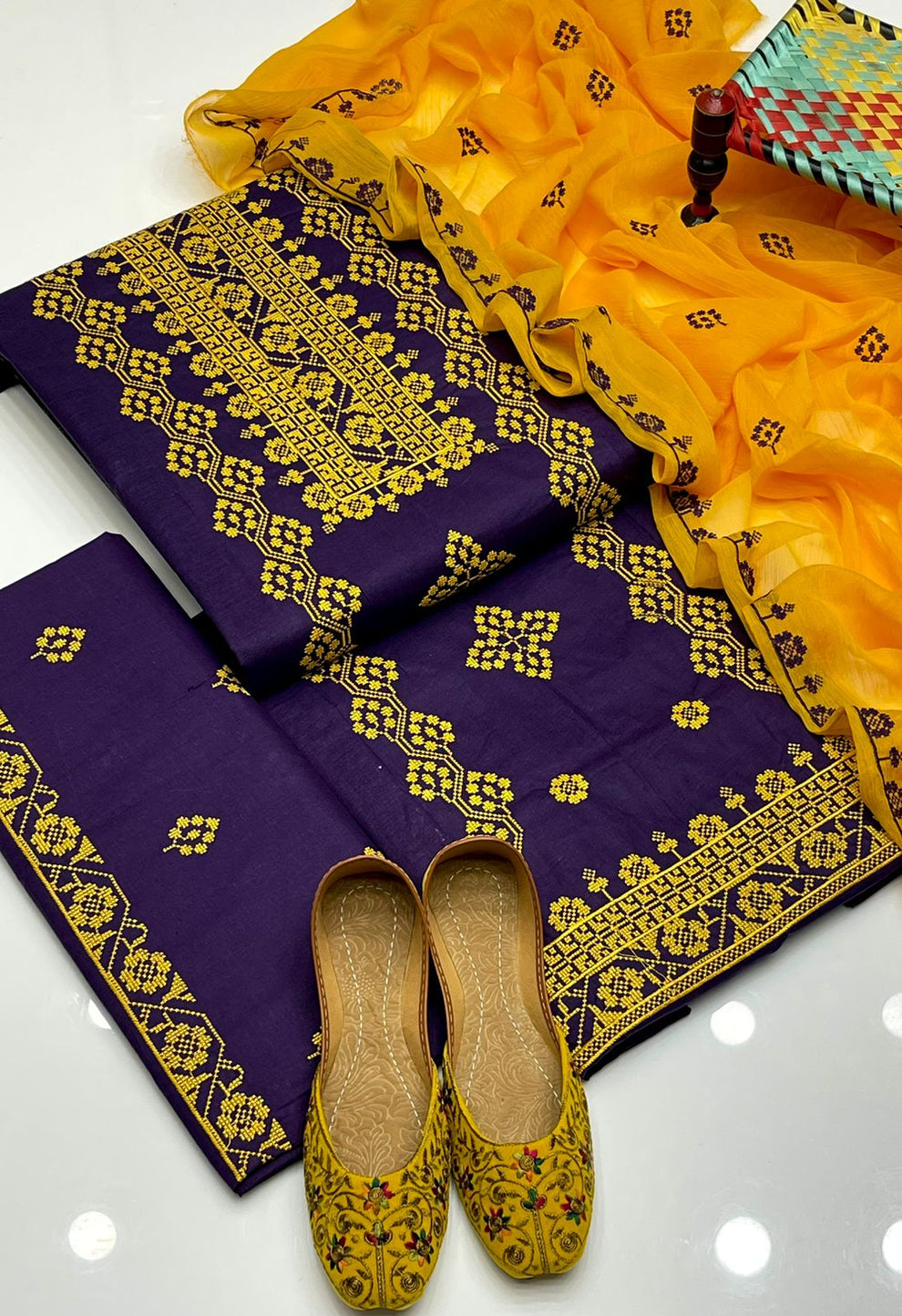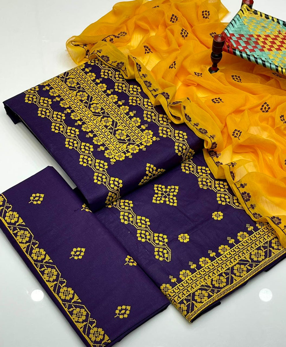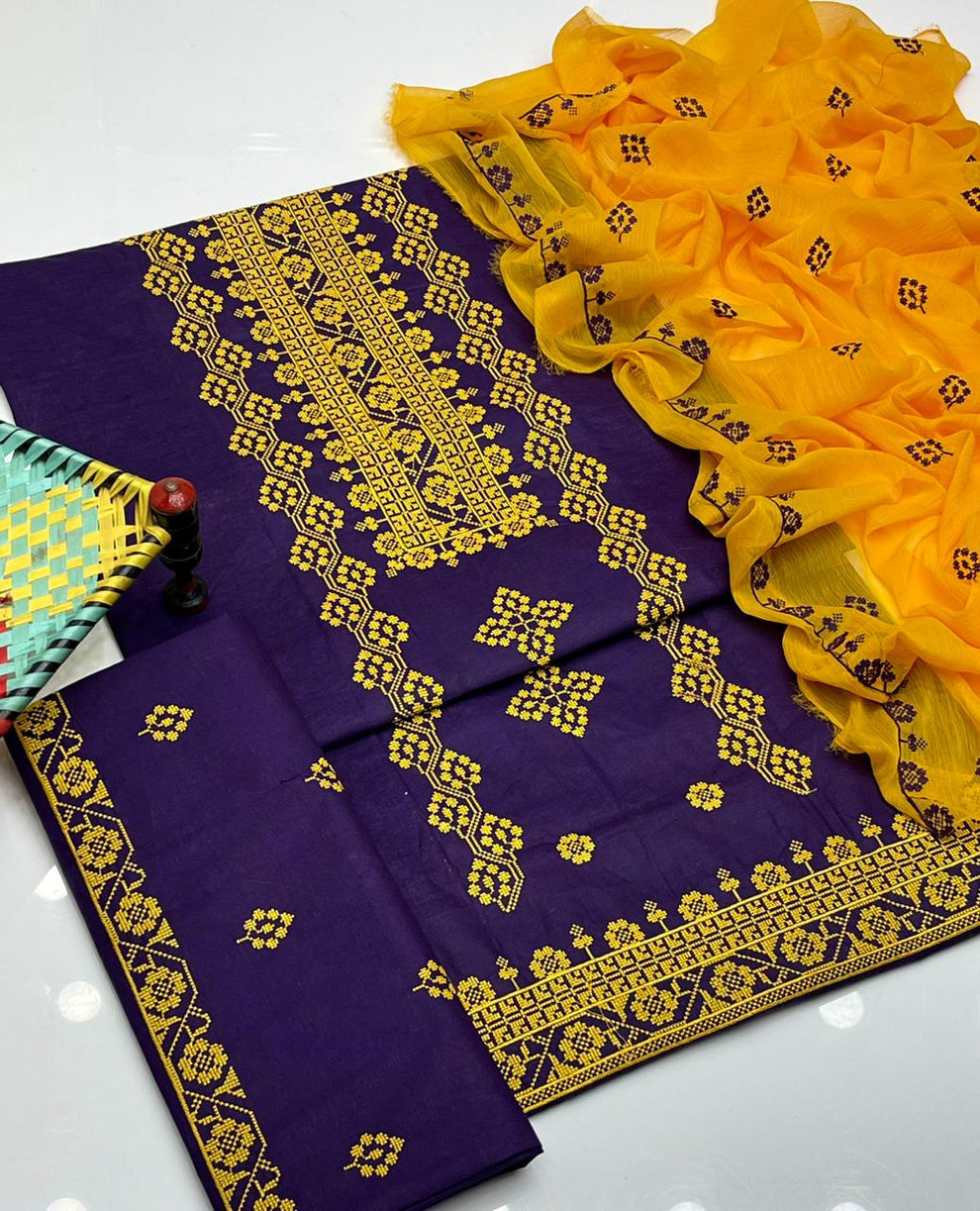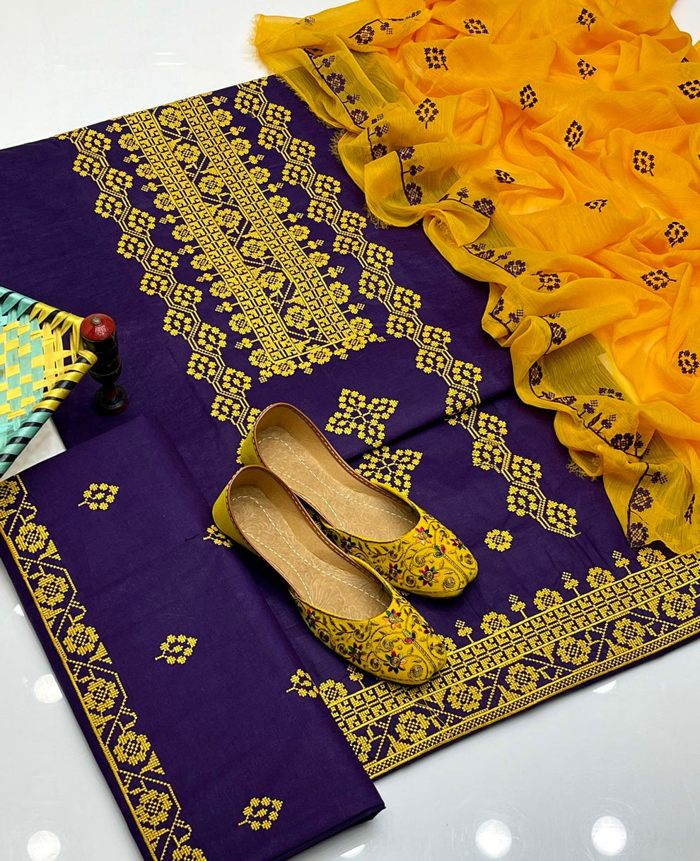 ✅ Cross Stitch Embroidered Cotton Shirt and Trouser