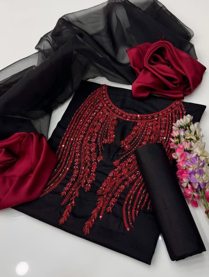 Thatβs why this Original FPL masterpiece is crafted with hand embroidery, resham & beads on pure organza, paired with a digital shine kattan silk trouser and organza silk palu dupatta.