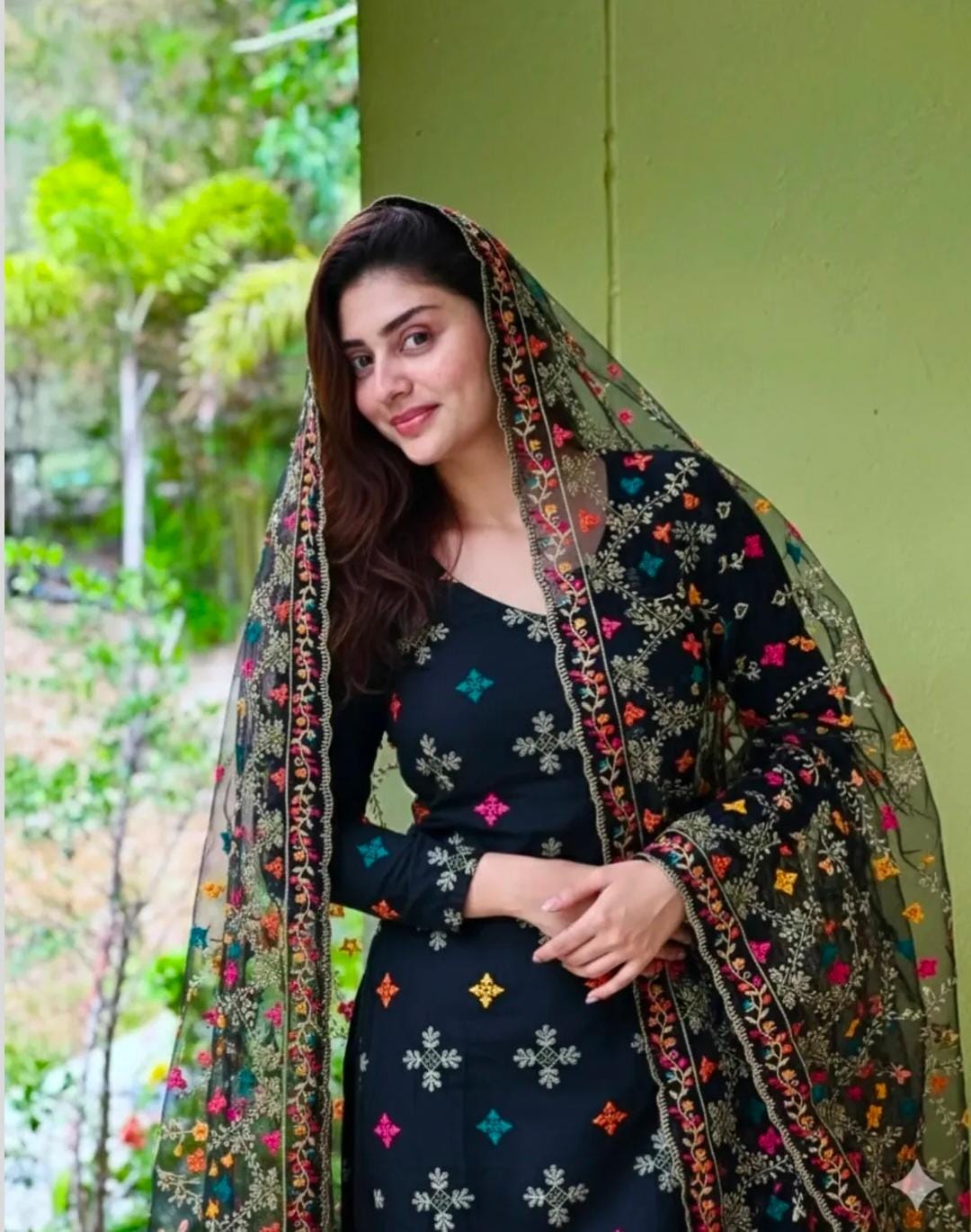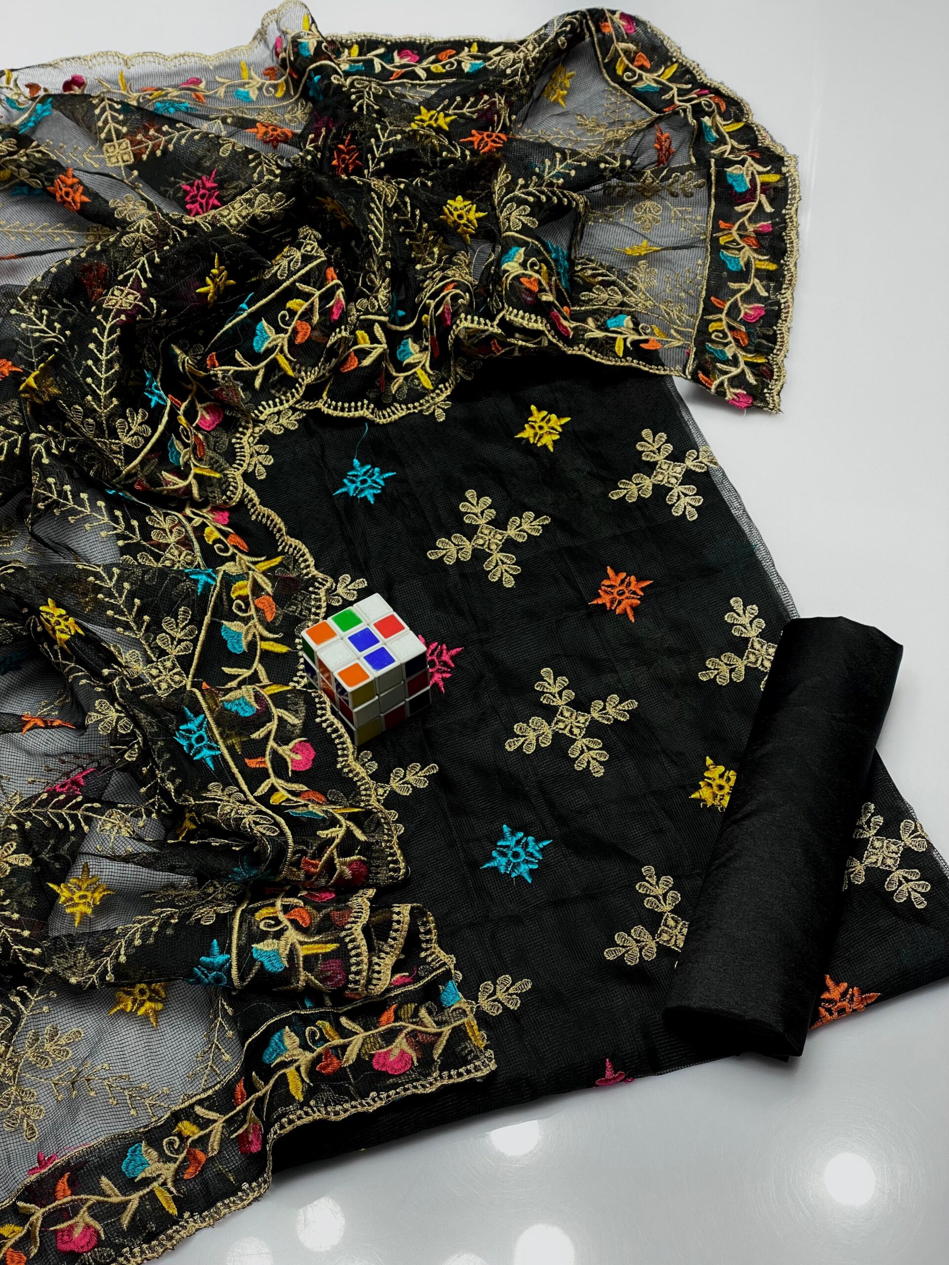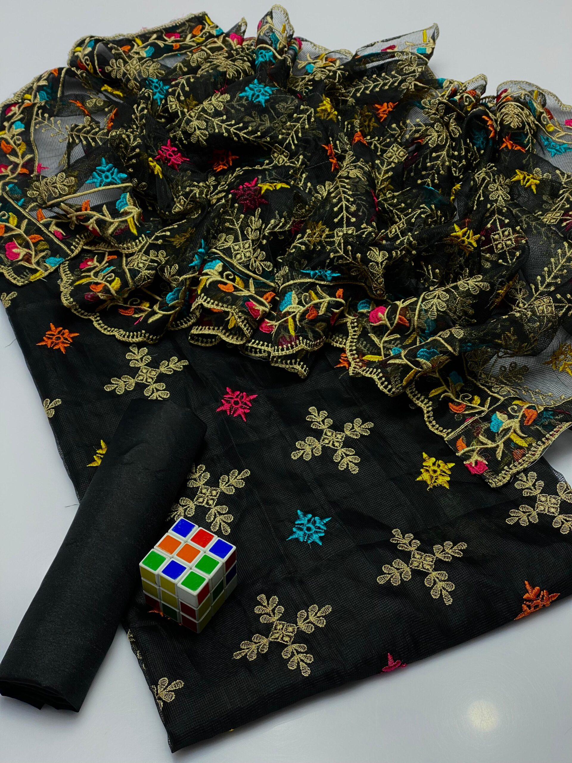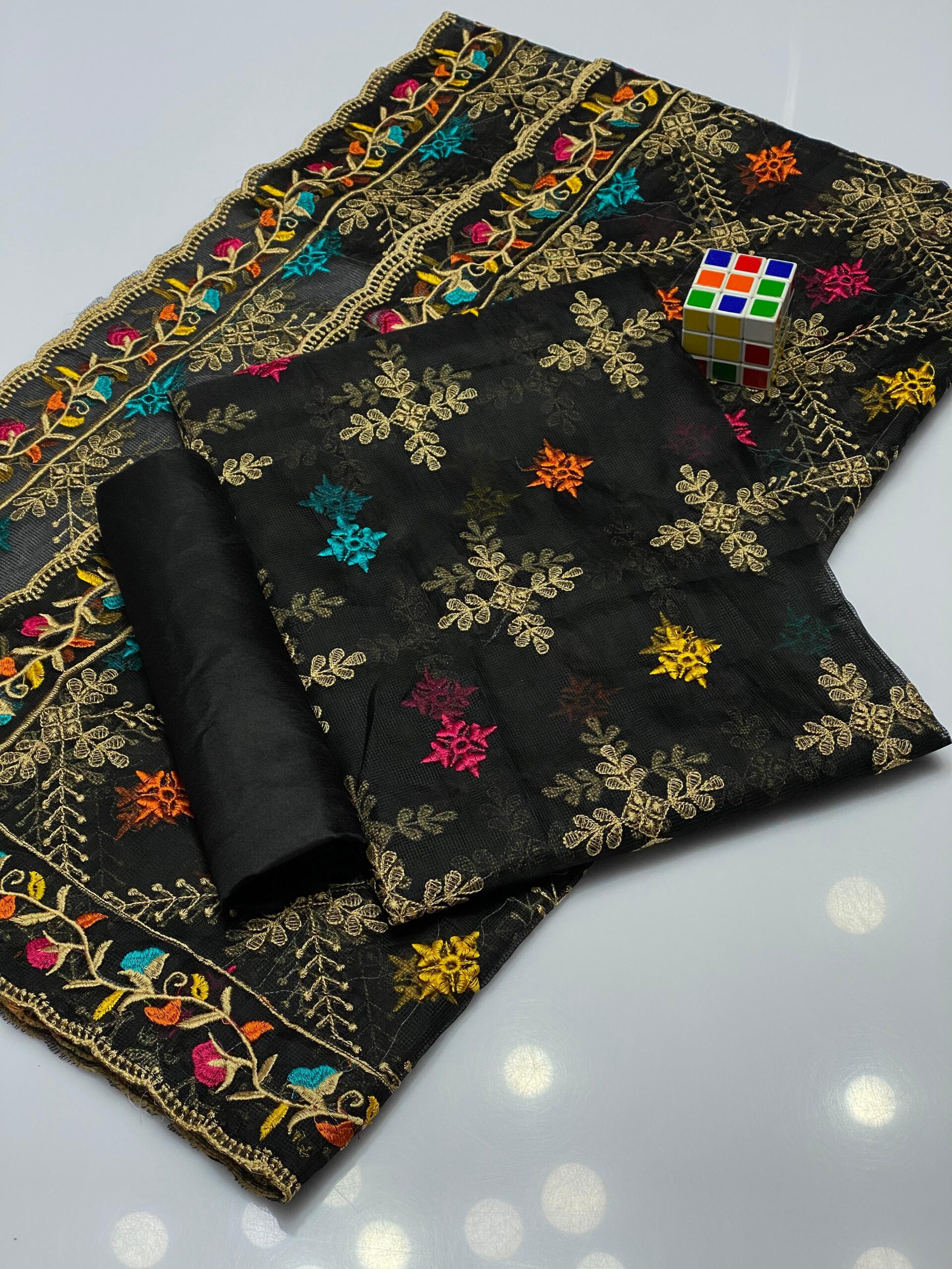 ❇️Net Dupata 4 side border With Center Jaal heavy Emb 🪡