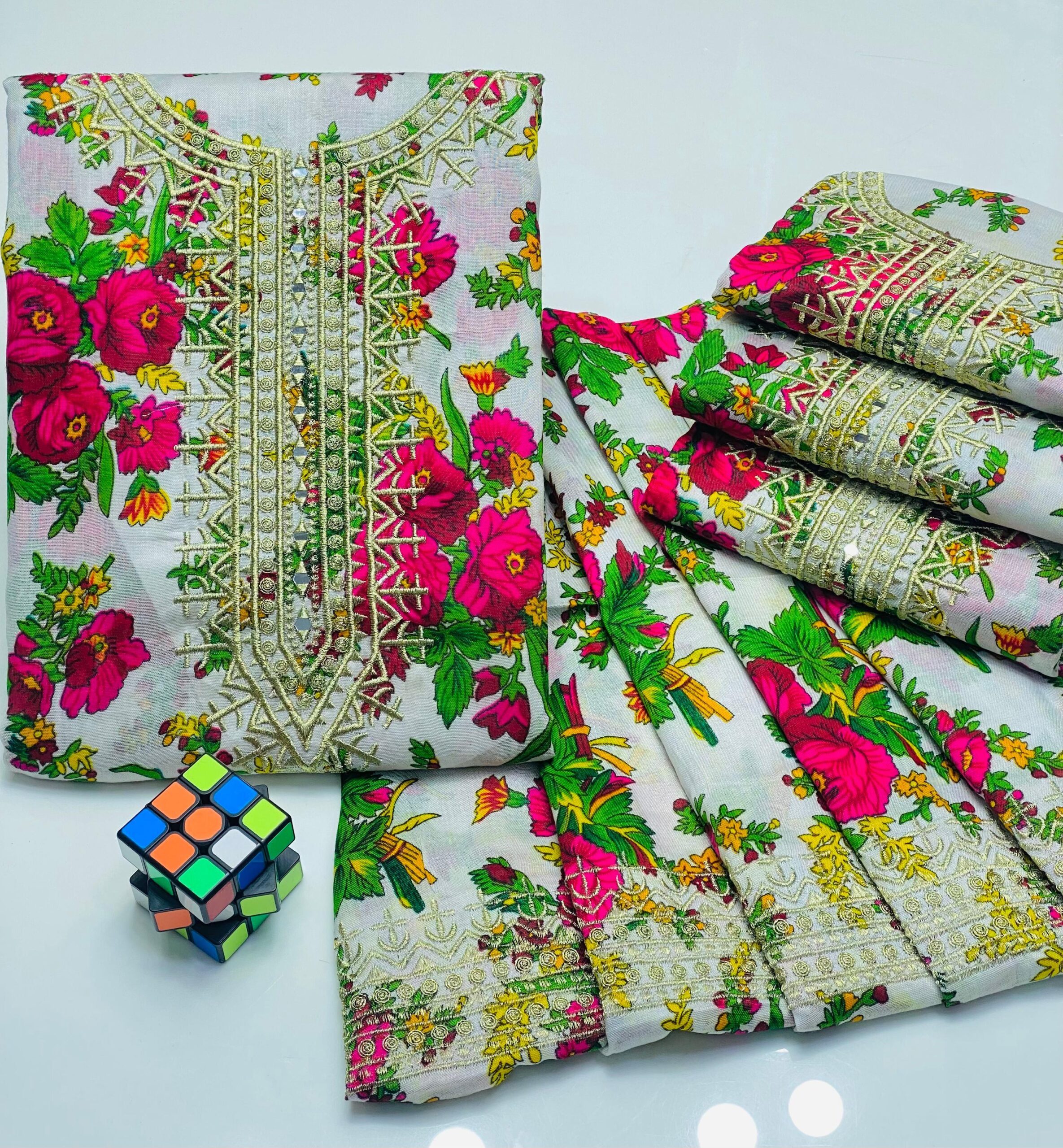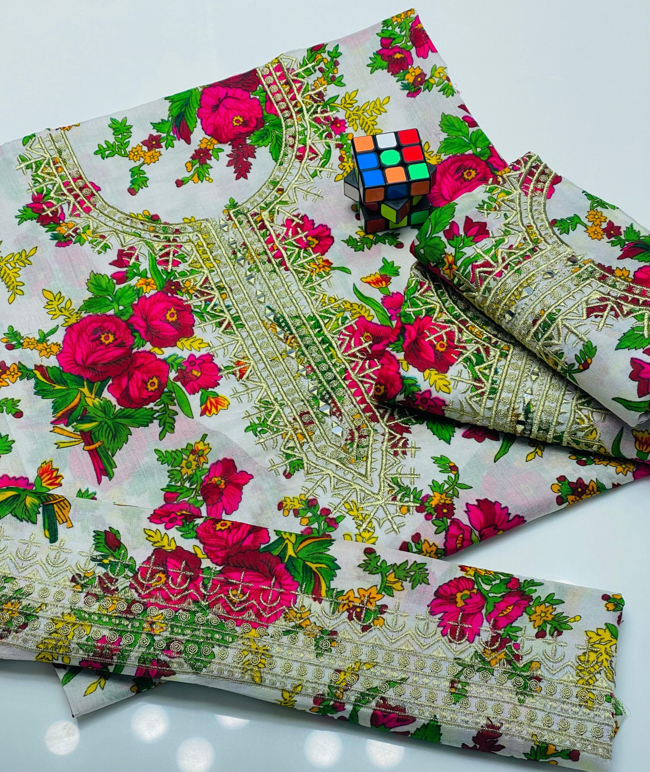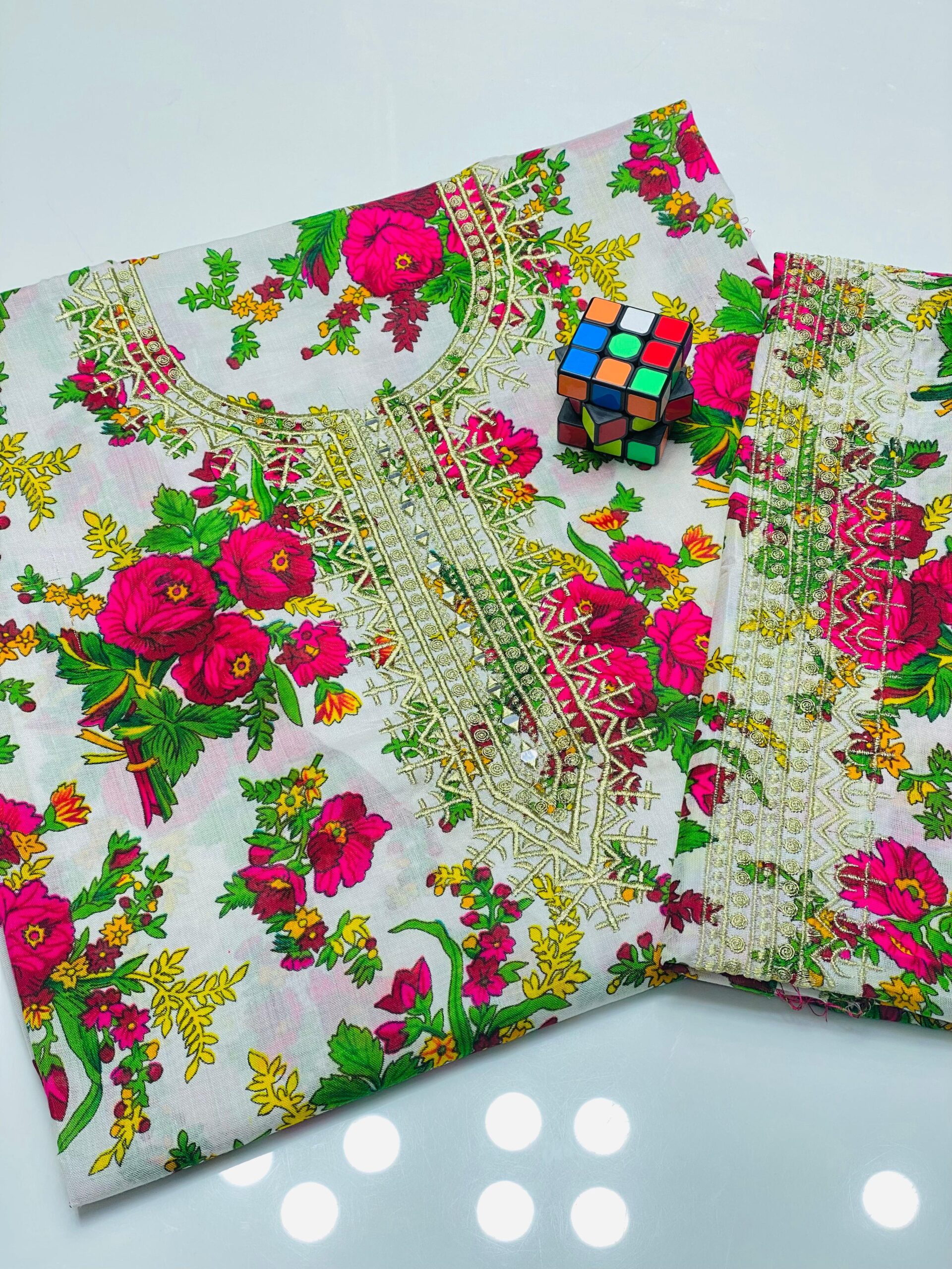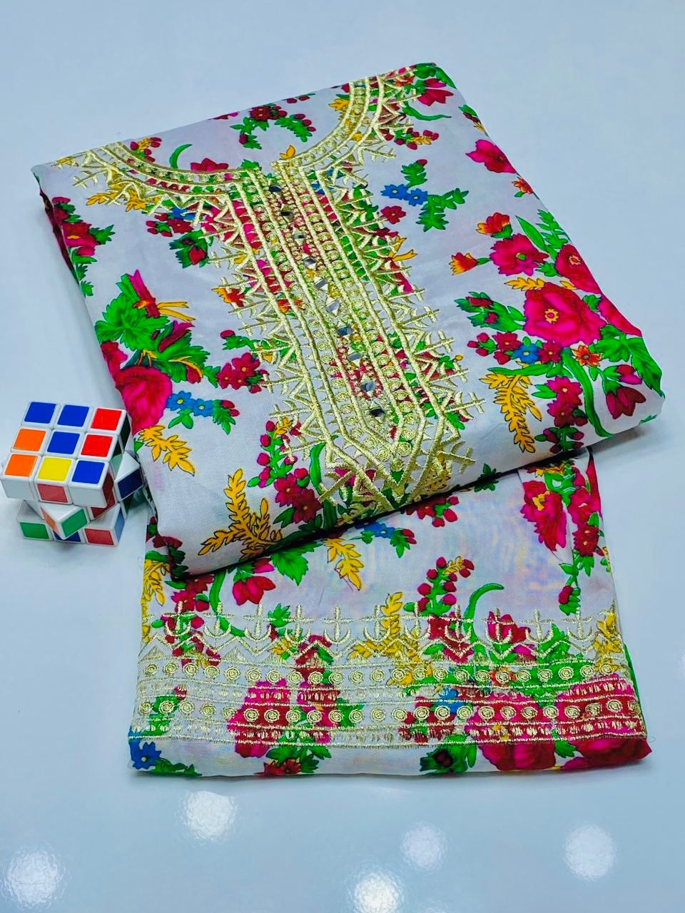 ❇️Stuff Light Marina 2pc Dress 👗 ❇️Shirt Gala Mirror Work Emb with Digital print shirt front back and sleeves ❇️Trouser Emb Work