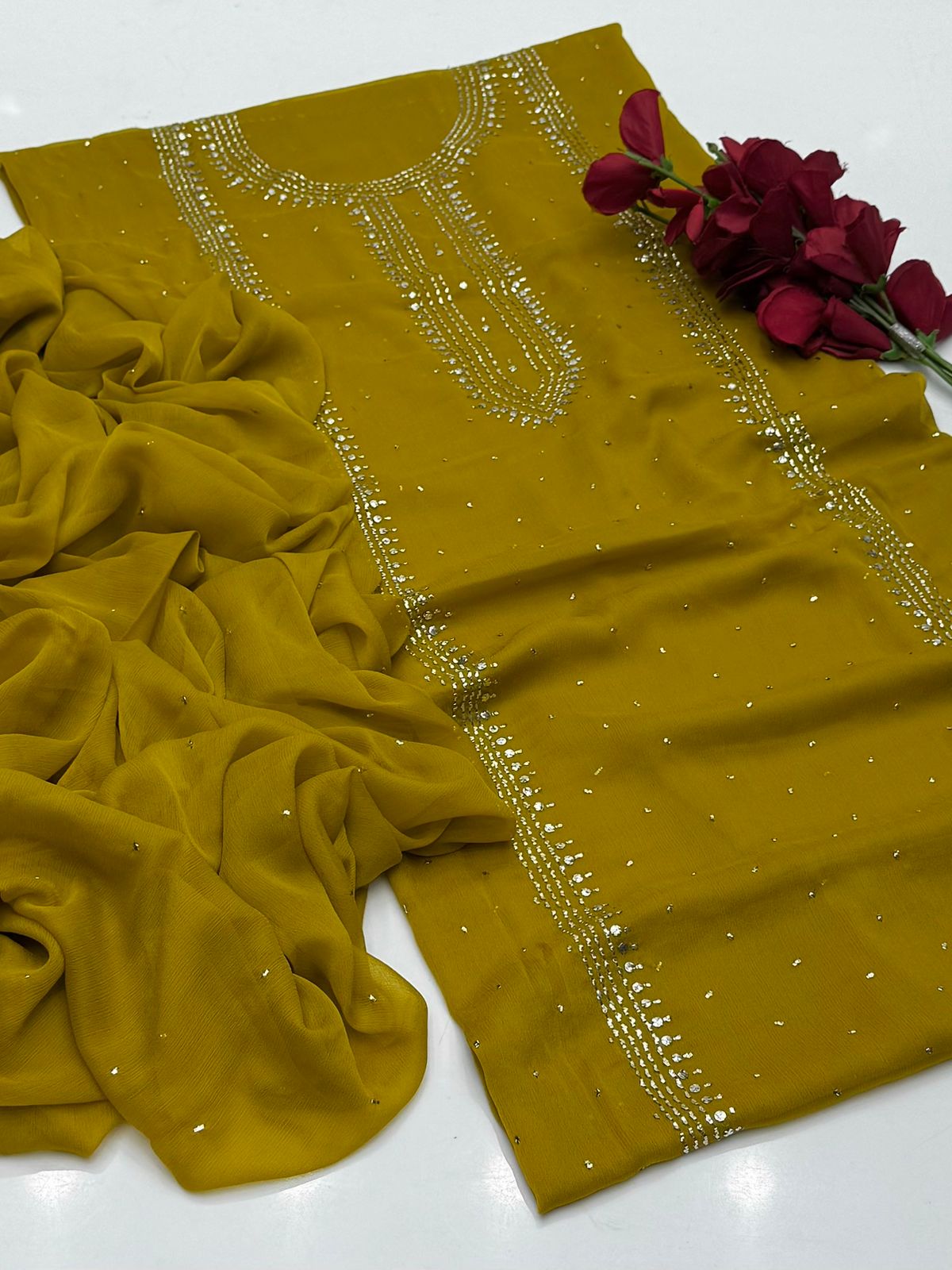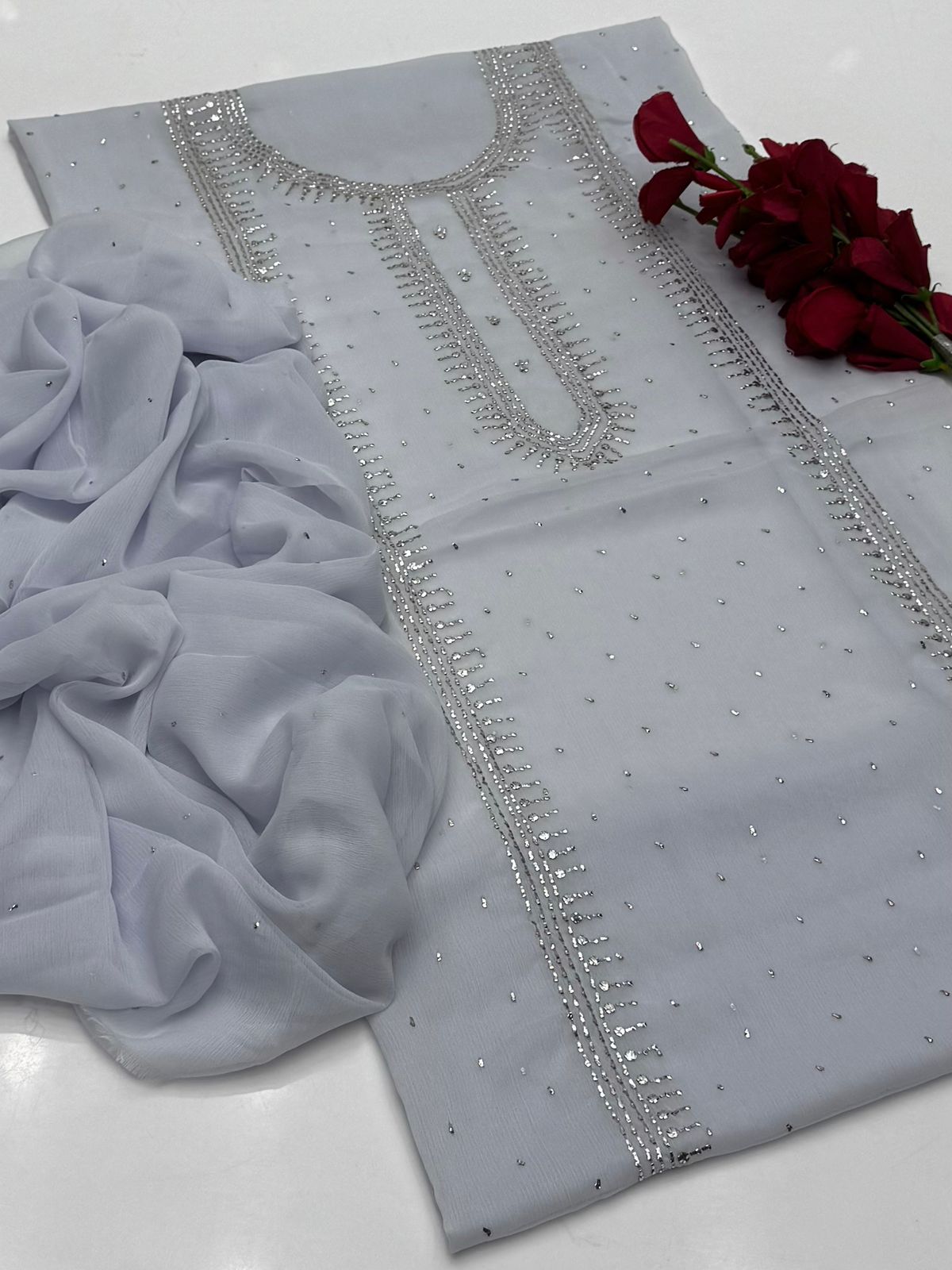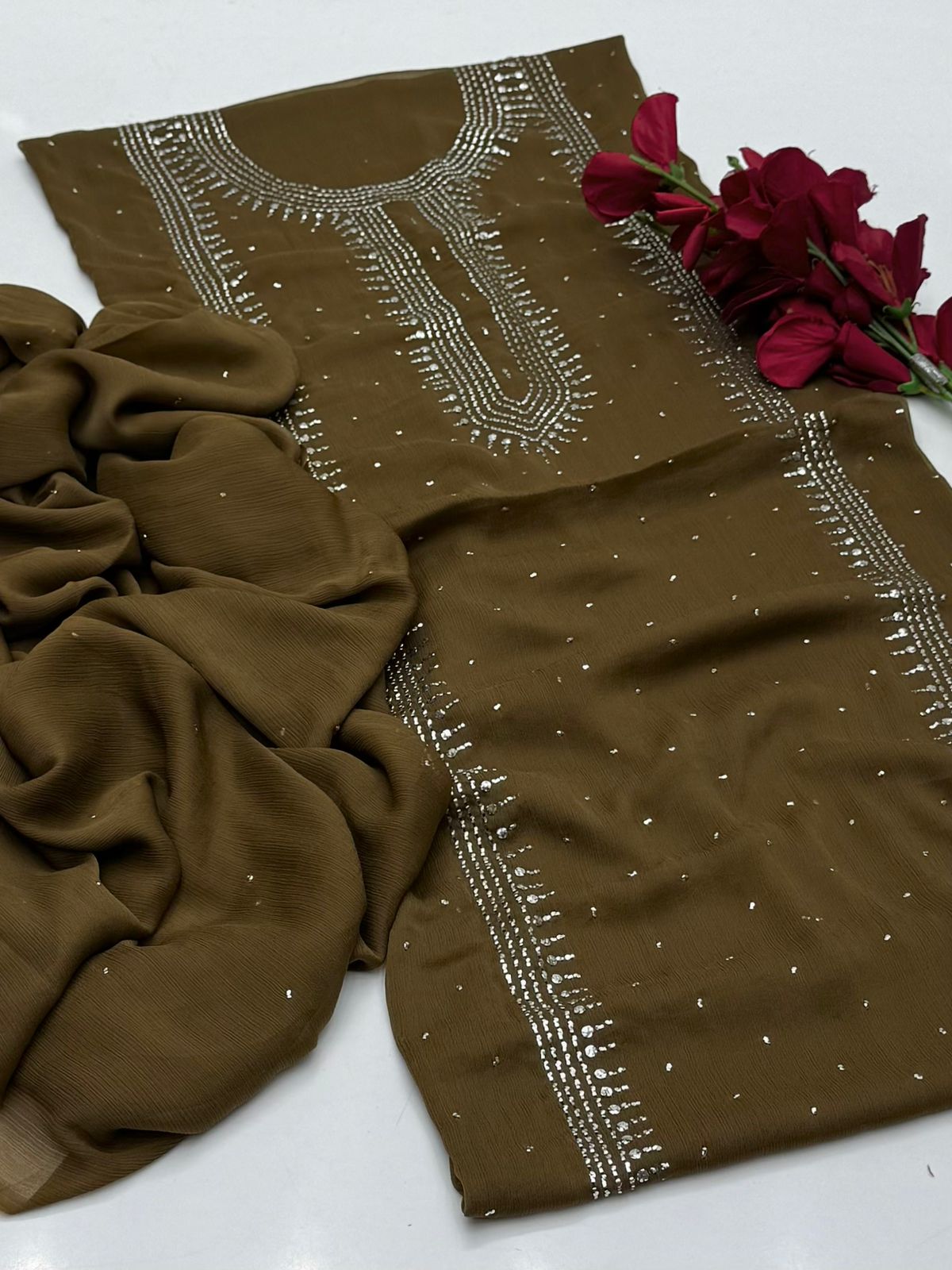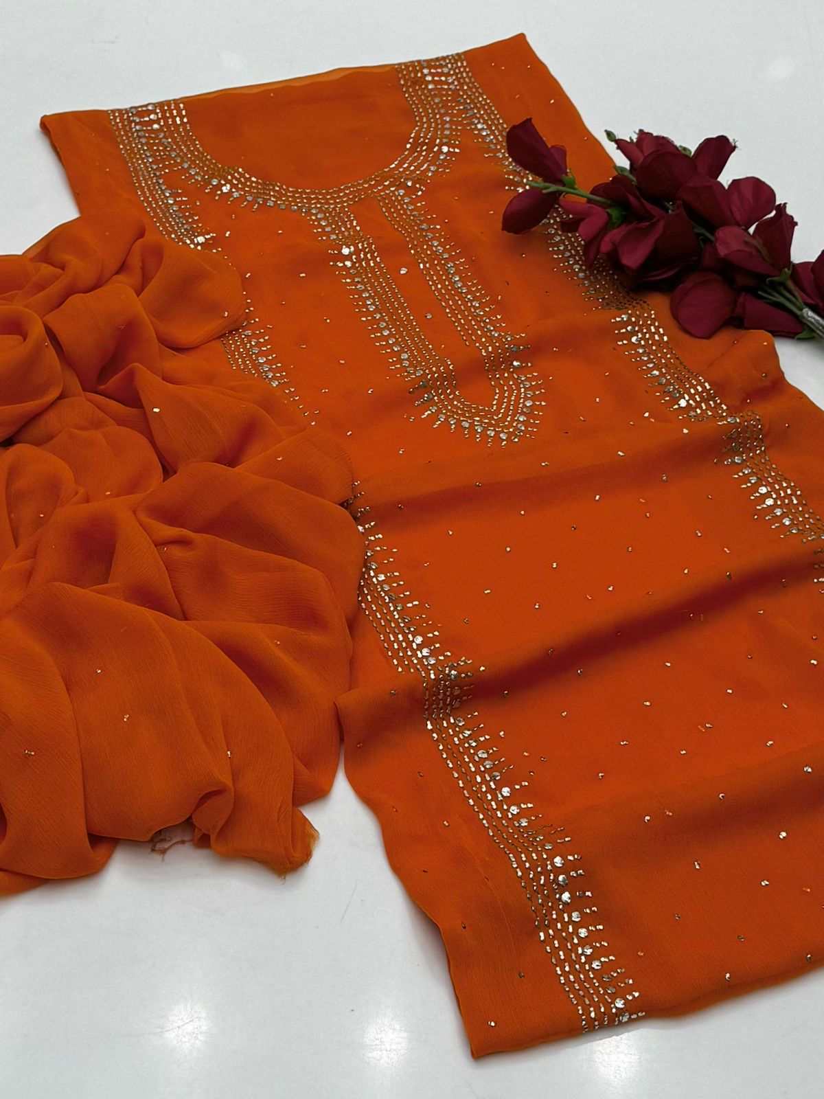 Bamber chiffon Mukaish Work Shirt Nd Dupatta Mukeish Work 2Pcs Dress .👗