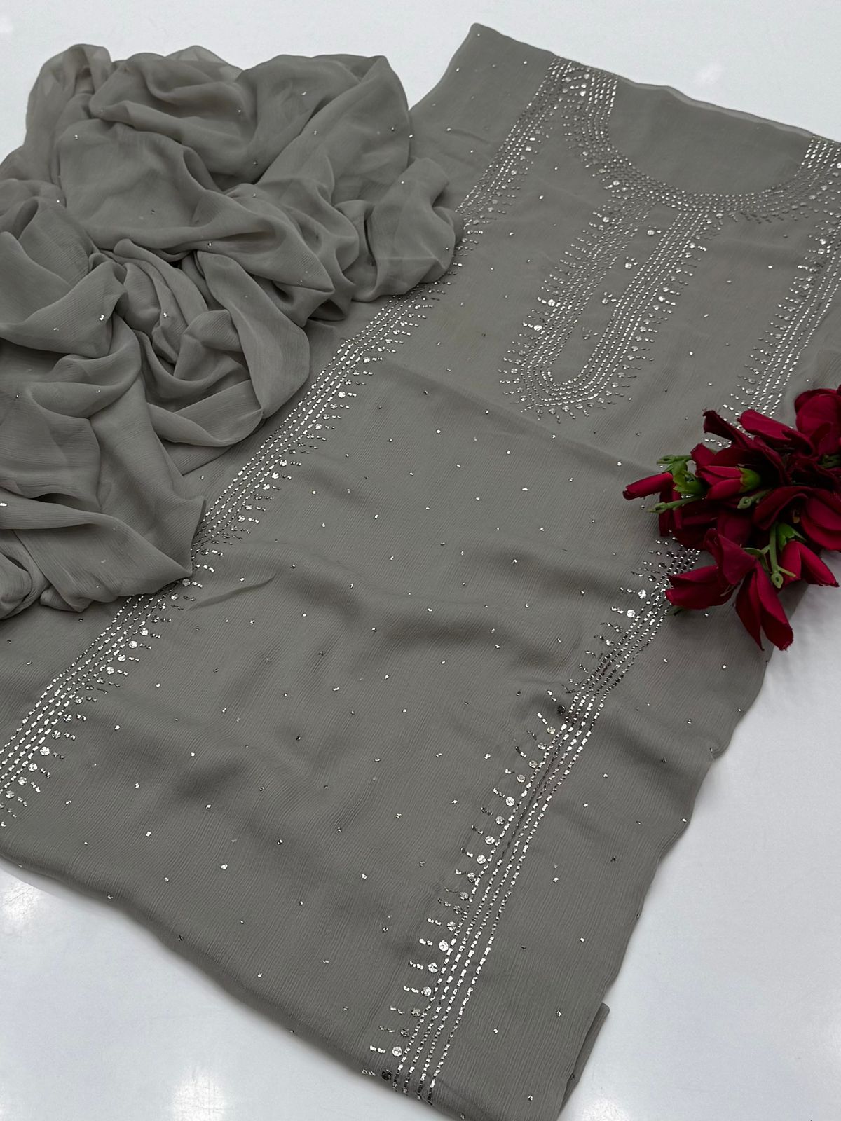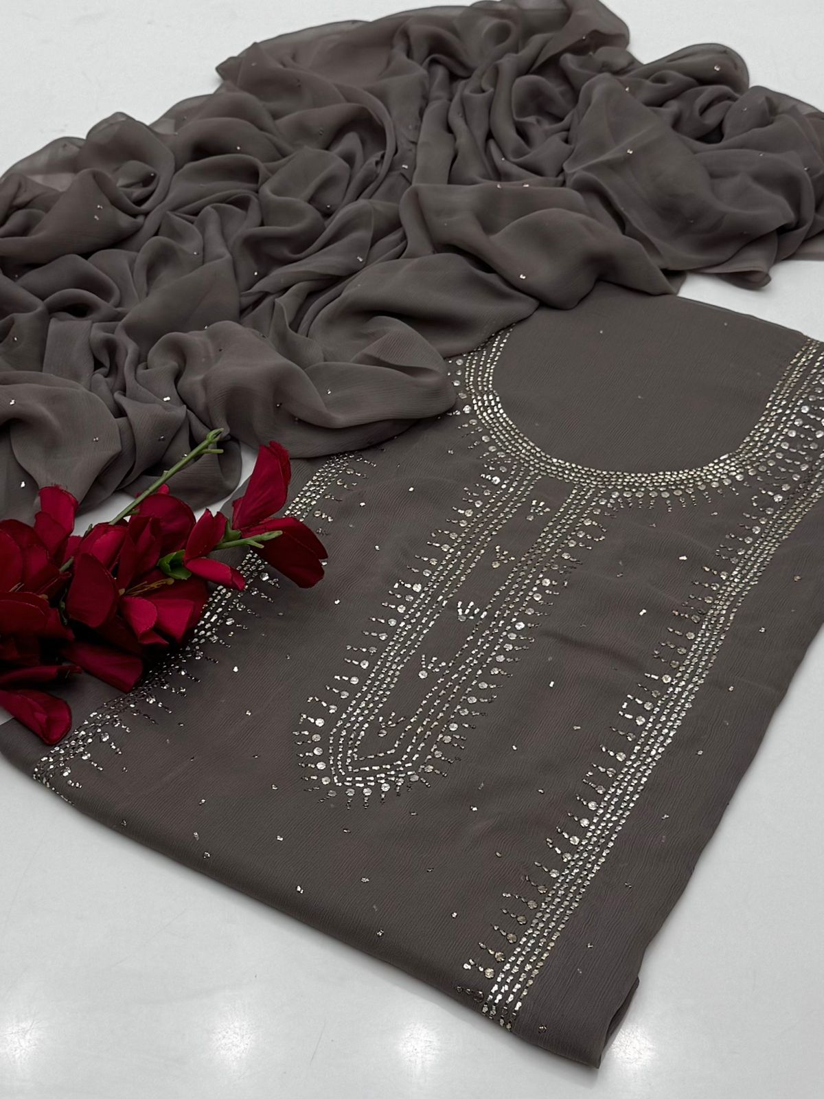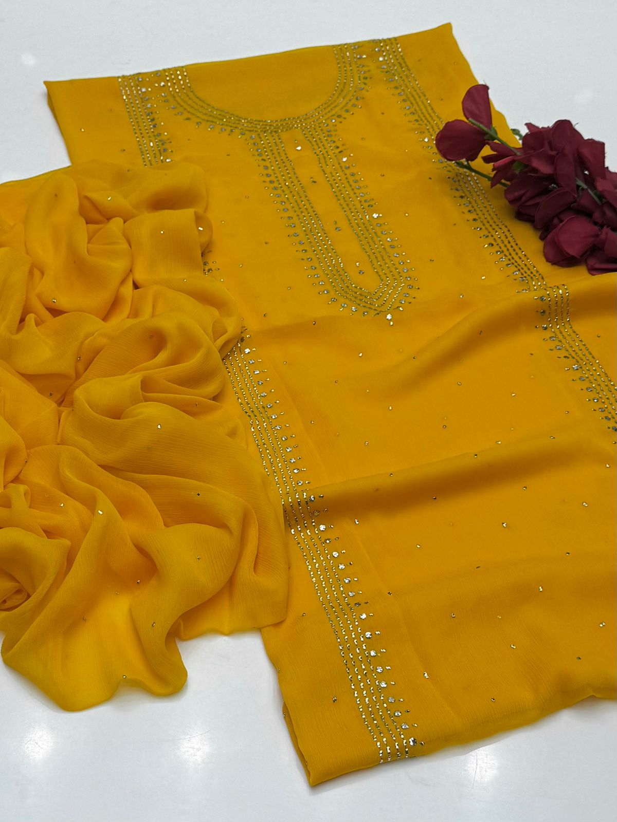 Bamber chiffon Mukaish Work Shirt Nd Dupatta Mukeish Work 2Pcs Dress .👗