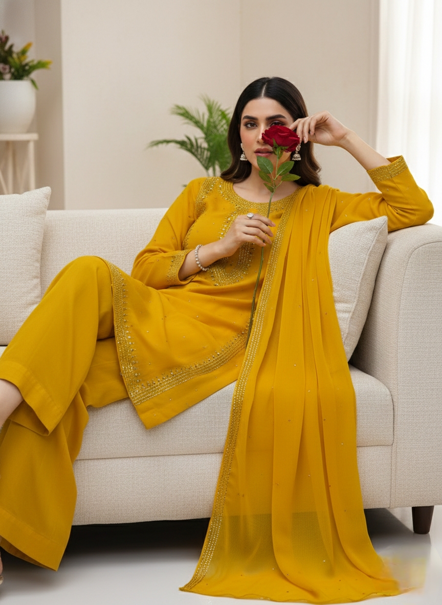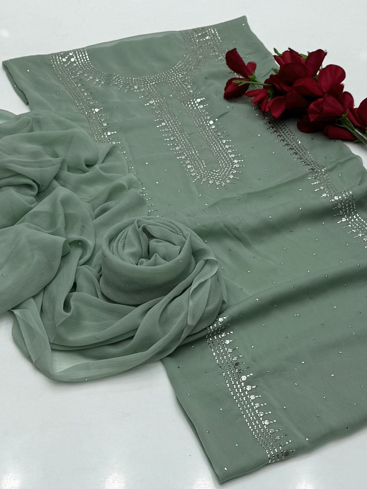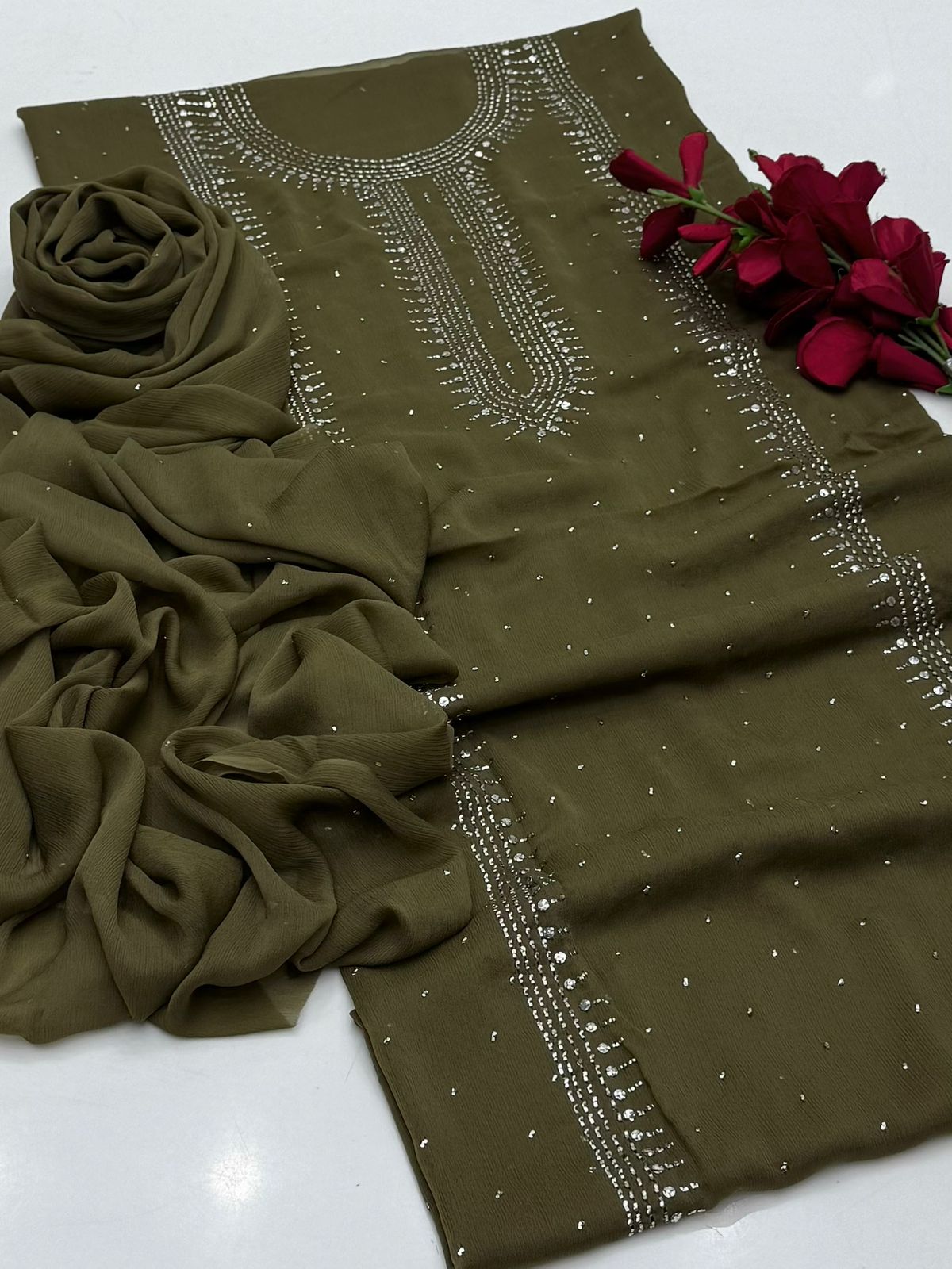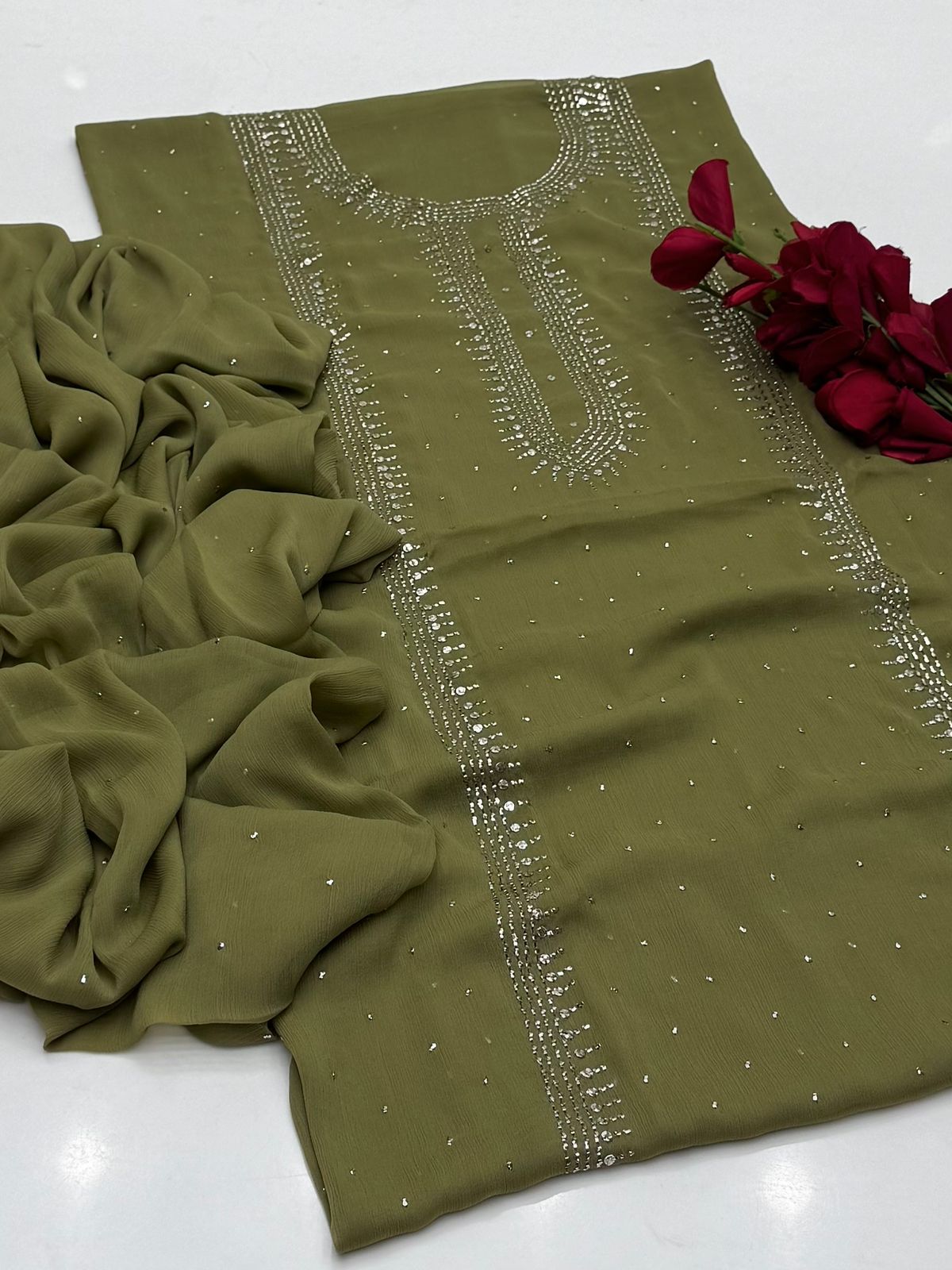 Bamber chiffon Mukaish Work Shirt Nd Dupatta Mukeish Work 2Pcs Dress .👗