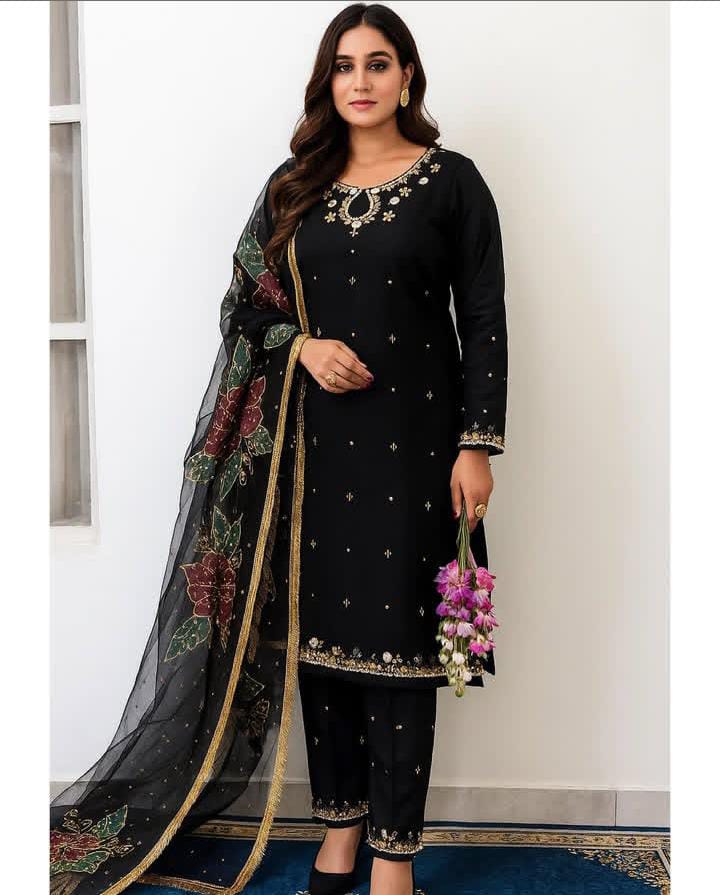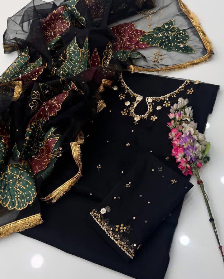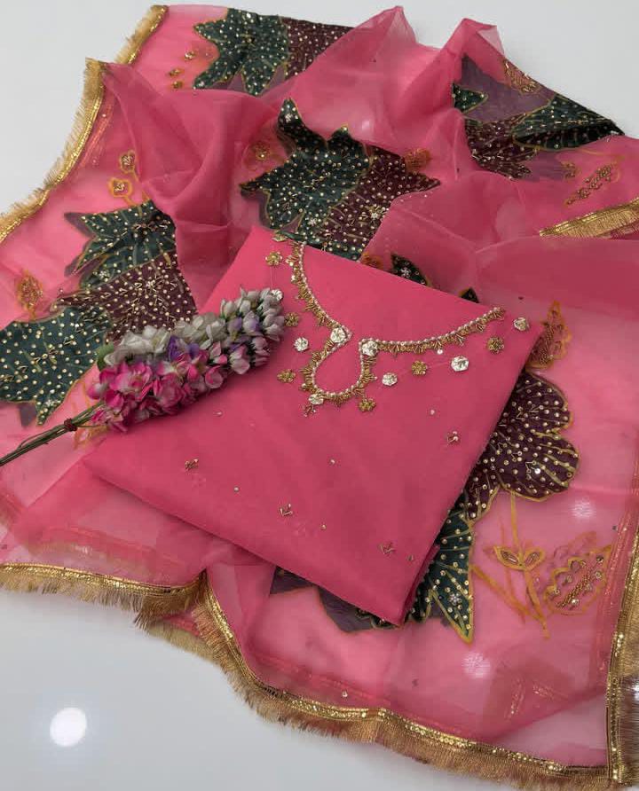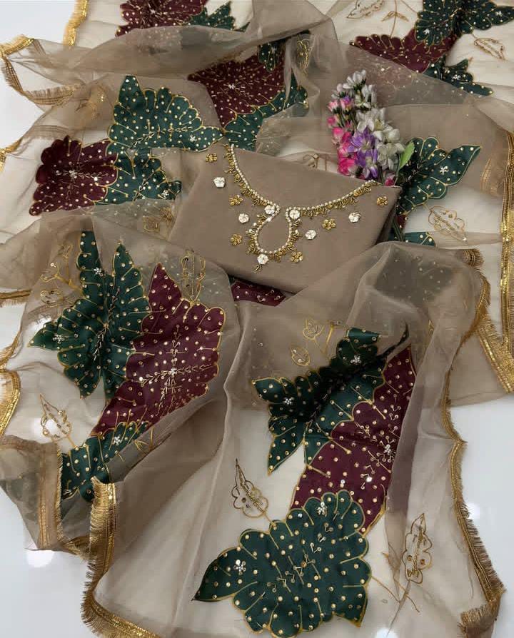 Beautiful Handwork Adda Work With Zarri Sequence Embroidery 🪡 Organza Shirt Along With HandPaint 🎨 Heavy Fancy Organza Duppata 2 Piece Dress 👗