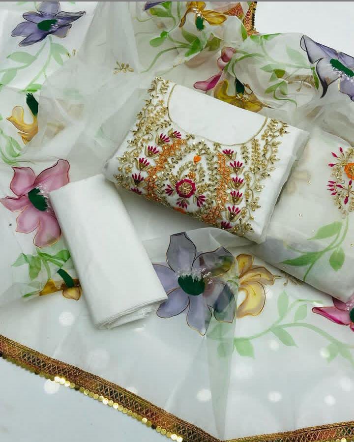 ✅Indian organza heavy Galla bazo hand mad work with heavy Daman brushpant work.