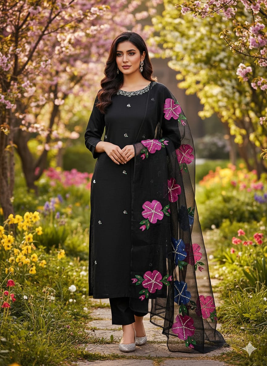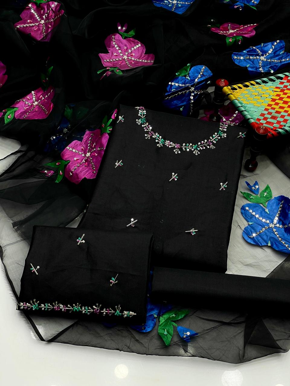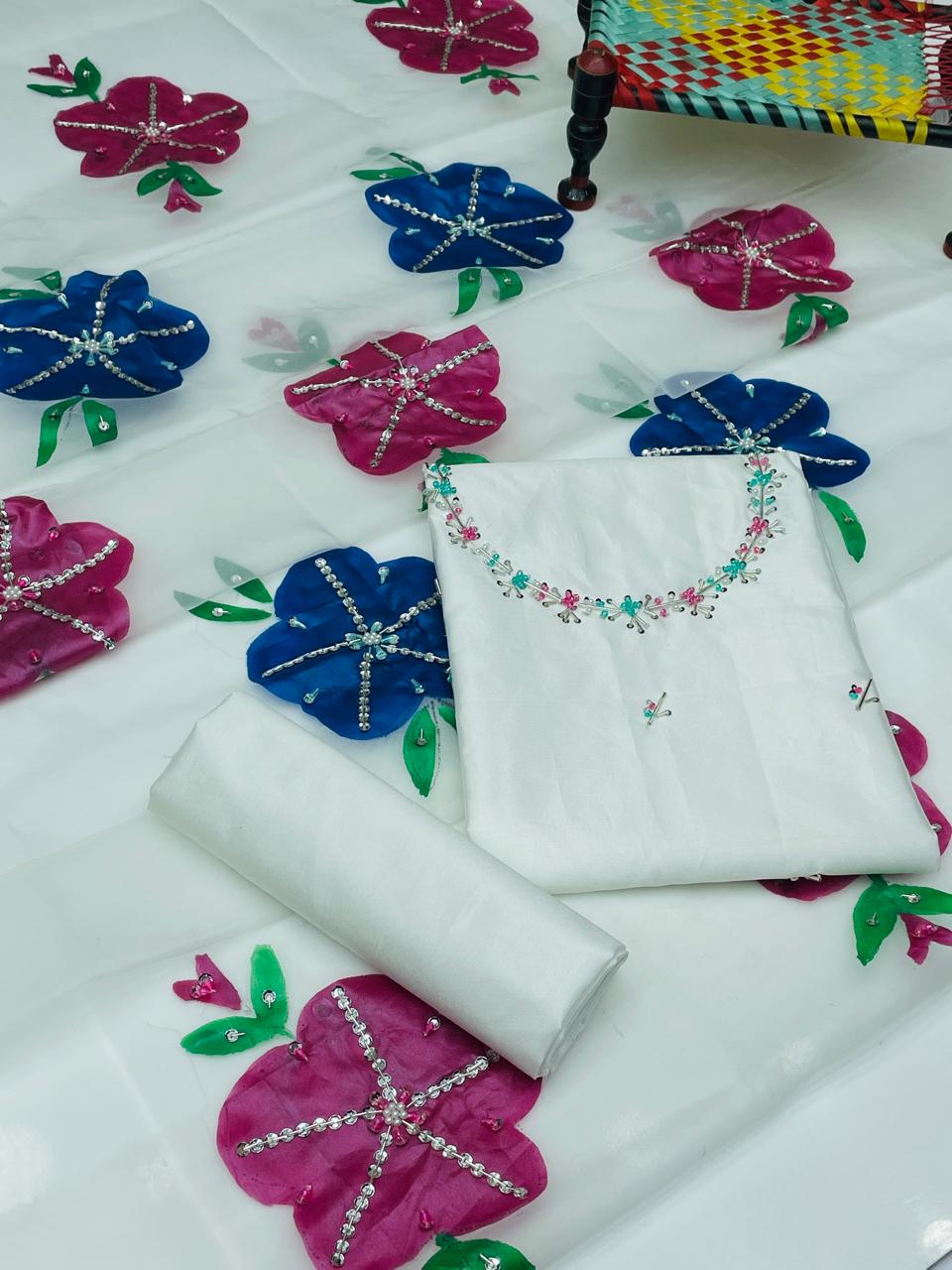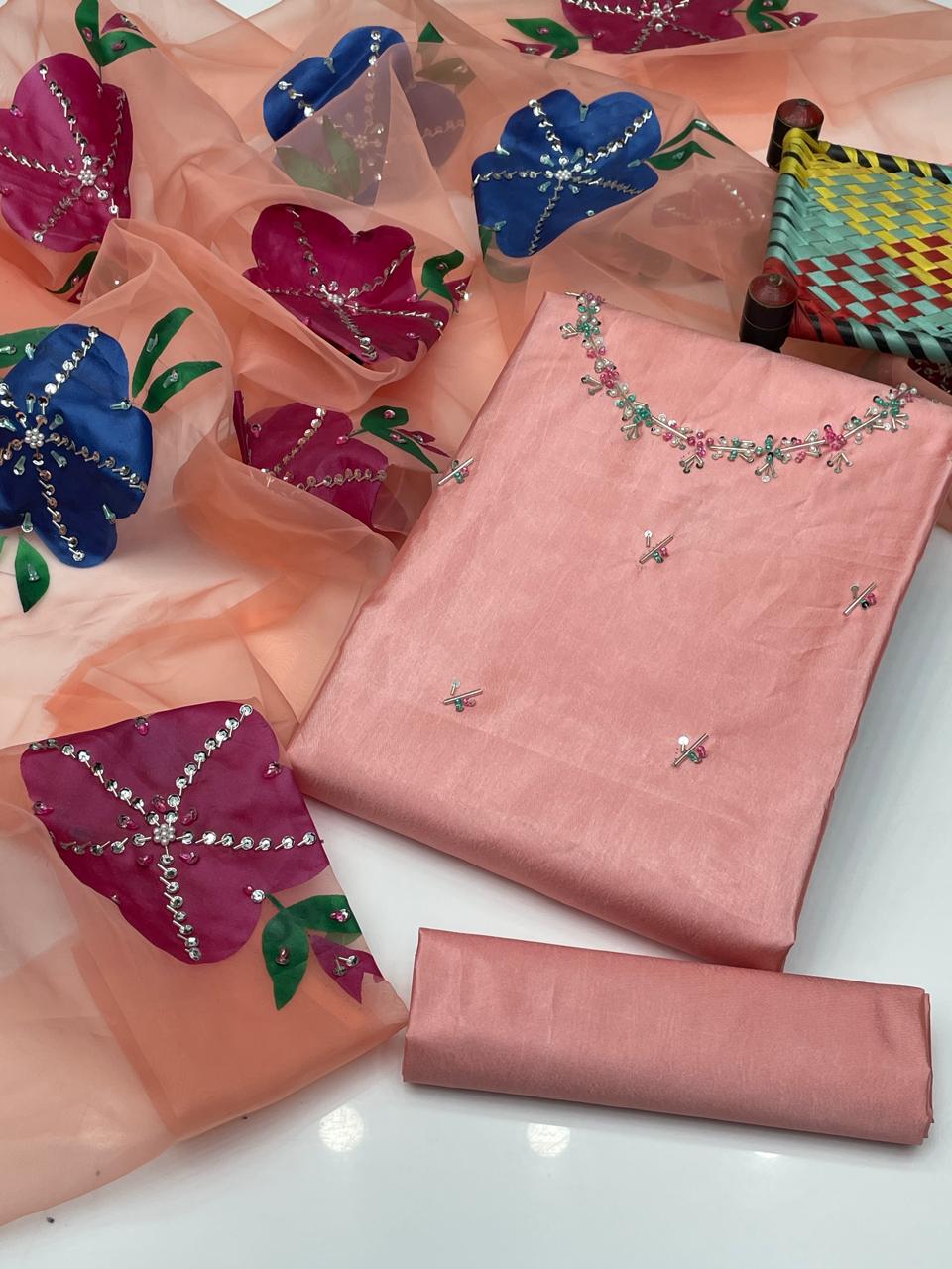 ✨ Indian Organza Dupatta with Handwork, Brush Painting & Zari Detailing (13 Bunches)