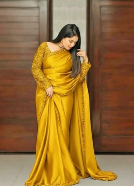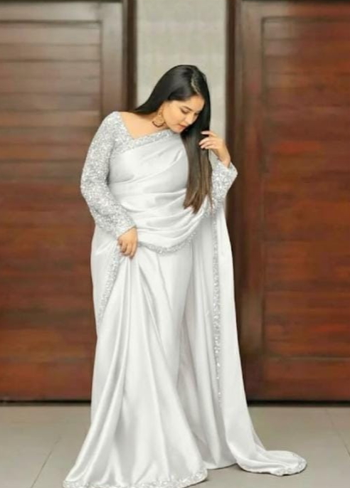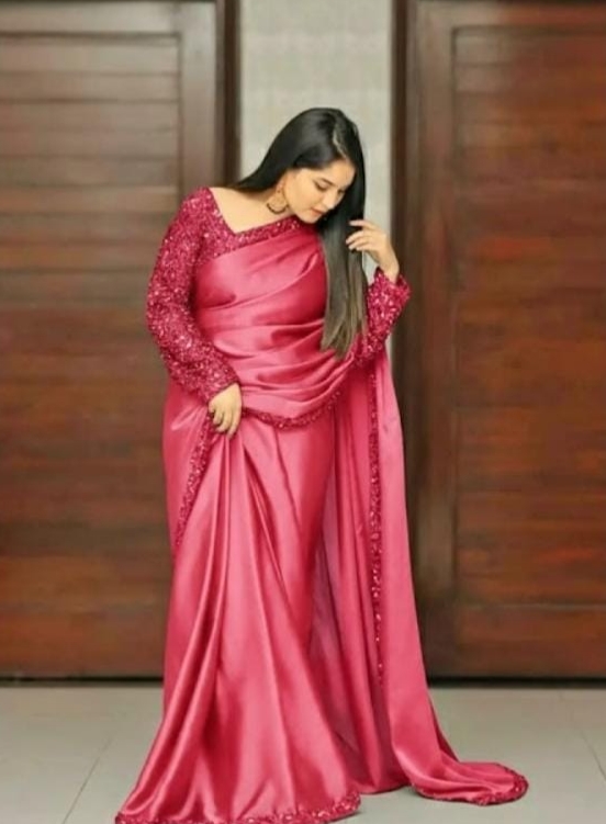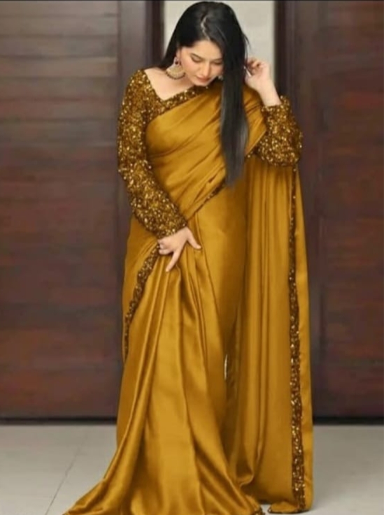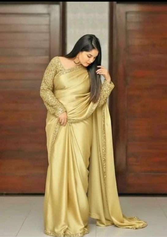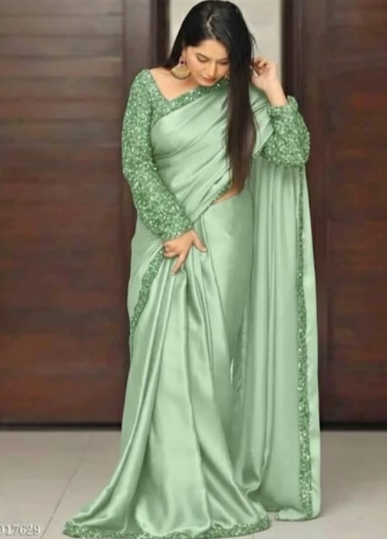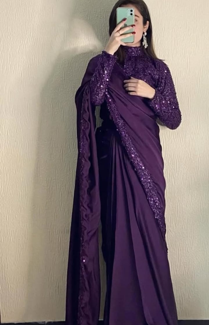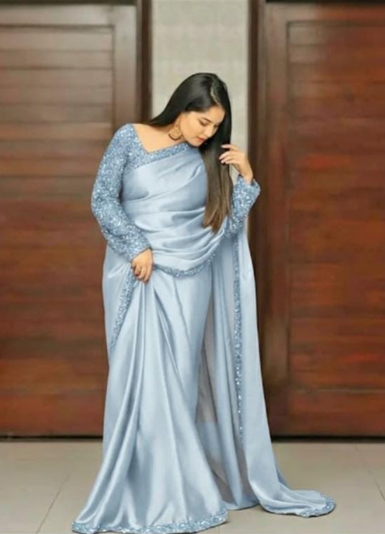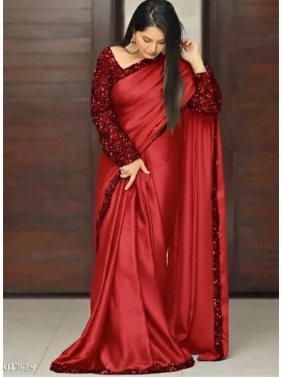 Shamoze Silk Sequence Border Bottom Flyer 4 Side Sequence Border Palla Along With Sequence Work Blouse & Sleeves Sareeš„».
