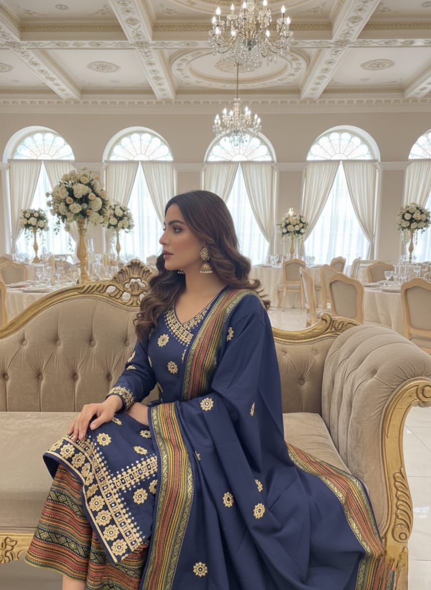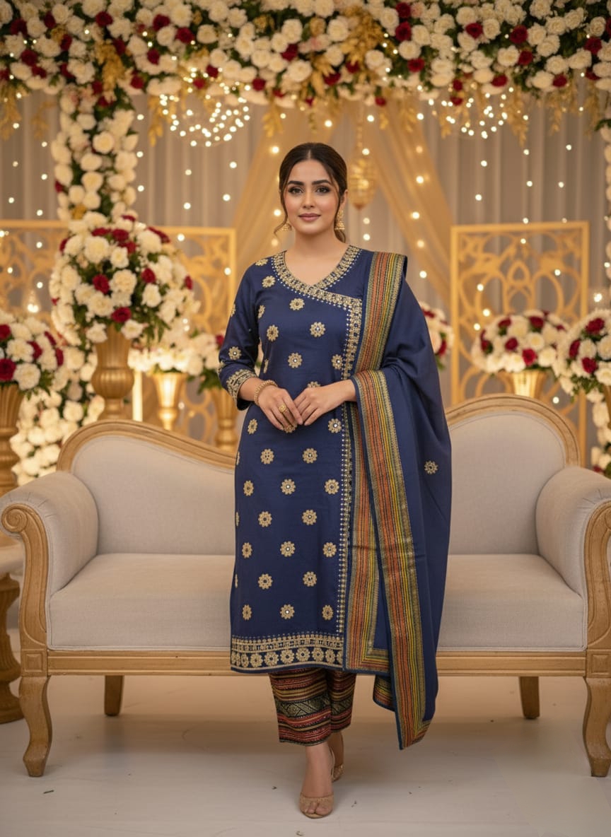 Premium soft Susi Banarsi embMaterial ❇️ Shirt: Front emb & Back plain ❇️ Trouser: Banarsi zarri ❇️ Dupatta: Authentic banarsi zarri shawl